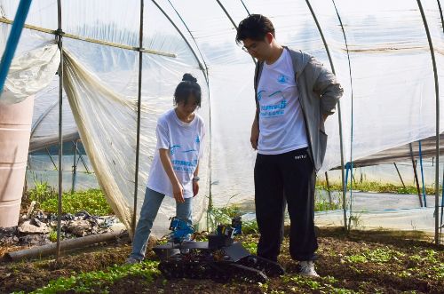 圖為團隊成員在大棚田地中進行實地測試(趙昊宇攝)