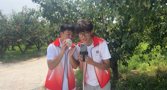 從理論到實踐:推普助農踐初心,鄉村振興在路上 碭山之行,讓這支跨專業大學生團隊真切感受到“語言+產業”在鄉村振興中的鮮活力量。帶著所見所聞的思考,同學們迅速將理論構想轉化為實踐行動:壹號梨園內,面對因年事已高而對直播心存畏難的果農,服務隊成員當即在梨樹下支起手機,以碭山梨為樣本現場演示直播流程。“介紹時要講出咱梨的特色,‘酥脆多汁’可比單說‘好吃’更打動人。”隊員邊操作邊講解,這場接地氣的“田間課堂”很快吸引了周邊果農駐足圍觀、側耳傾聽。