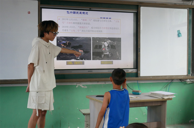 李瑞楠老師則以"三航"(航空、航天、民航)特色課,結合南航專業優勢,用模型與動畫展示大國重器,通過各種圖文,讓學生了解到航空器、航天器、火箭和導彈的種類及差異。隨后,課程以嫦娥奔月傳說為開篇,串聯古代中外發明與近現代航空航天發展史,開啟孩子們向往藍天、追逐夢想的篇章。