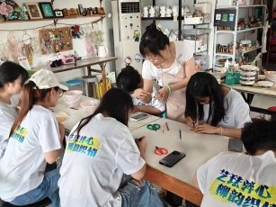為夯實實踐基礎,6月19日團隊走進非遺體驗基地學習琺瑯技藝。在掐絲、點砂的專注創作中,成員們親身體驗到藝術創作對情緒的舒緩作用——指尖與材料的觸碰、對細節的打磨,能讓人暫時脫離雜念,進入平靜專注的狀態。這種切身體會,為后續引導特殊群體積累了感性認知。