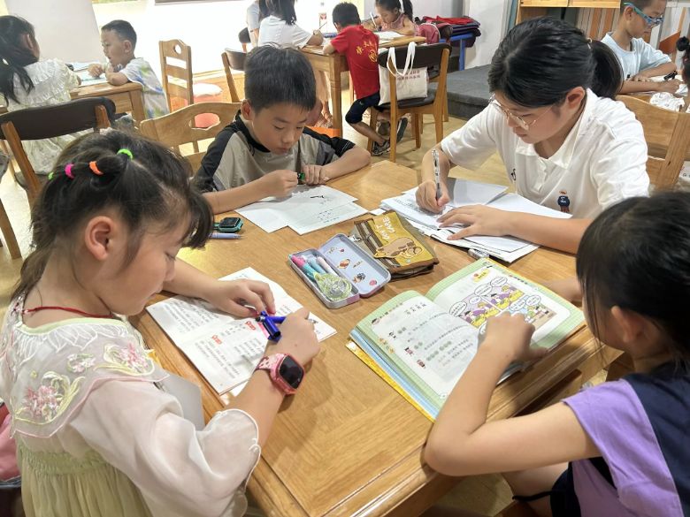 7 月 14 日,武漢東湖學(xué)院管理學(xué)院 “橘徠服兮實(shí)踐隊(duì)” 在秭歸縣茅坪鎮(zhèn)丹陽社區(qū)愛心托管班推進(jìn)第六日活動(dòng)。課業(yè)輔導(dǎo)持續(xù)精進(jìn),特色課程新意頻出,為孩子們的假期畫卷再添靈動(dòng)筆觸。