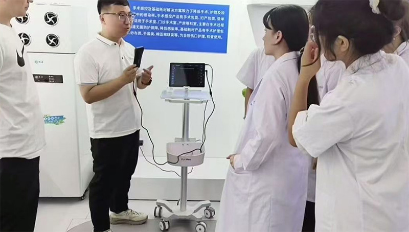 體驗智慧生活:科技與人文關懷的融合 在集團的康君生活展區,實踐團成員們體驗了駝人集團旗下康君品牌的系列健康產品。從采用專業抗菌技術的納米材料枕套,到各類智能家用醫療設備,成員們切實感受到科技在日常生活中的廣泛應用。觸摸著柔軟親膚的納米枕套,聆聽著產品如何守護家庭健康的介紹,大家深刻體會到科技創新與人文關懷的完美結合。這些貼近生活的展品讓醫學生們認識到,醫療科技創新的最終目的是提高人們的健康水平和生活質量,這進一步堅定了他們“科技興醫、服務人民”的信念。