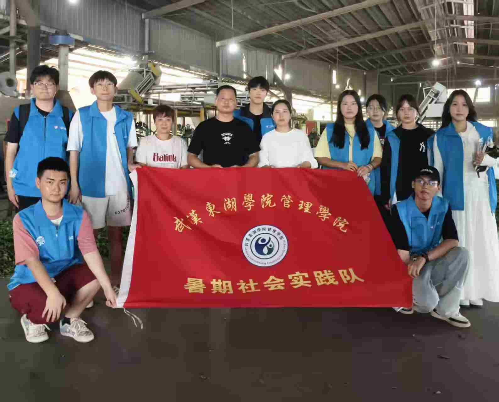 (實踐隊走訪茶農、探索茶產業發展故事,與茶農們合影) 緊接著,實踐隊探訪村辦茶廠。廠長張老板現場演示殺青、揉捻、烘干等傳統制茶工序,指尖翻飛間,茶葉的清香四溢。她詳細介紹“移民茶”品牌的崛起之路:通過電商直播讓帶著鄉愁的茶葉香飄全國,同時吸納大量移民家庭勞動力返鄉,實現“家門口就業”,讓裊裊茶香中飄起幸福滋味。雙方圍繞茶葉品質溯源體系構建、茶旅融合路徑拓展等議題展開深入交流,隊員們用鏡頭記錄下每一個鮮活瞬間,為“移民文化”主題研學課程積累生動案例。