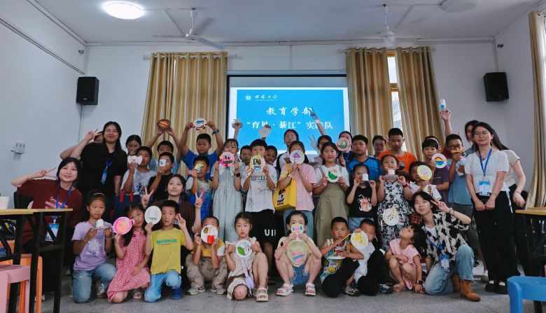 2025年7月10日下午,重慶市綦江區打通鎮大石壁社區活動室內熱鬧非凡,西南大學教育學部“育見·綦江”暑期社會實踐隊為這里30余名小學至初中階段的兒童,帶來了一場集趣味游戲、科學實驗與手工創作于一體的暑期實踐活動。活動以豐富多樣的形式,讓孩子們在歡樂互動中收獲知識與成長。