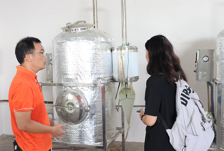 圖3實踐隊員與盈信科技負責人蔡益基探討古法萃取沉香精油