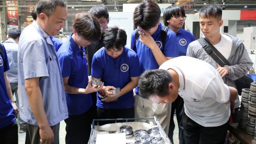 圖為同學們觀摩部件打磨后的成品 王欣悅攝