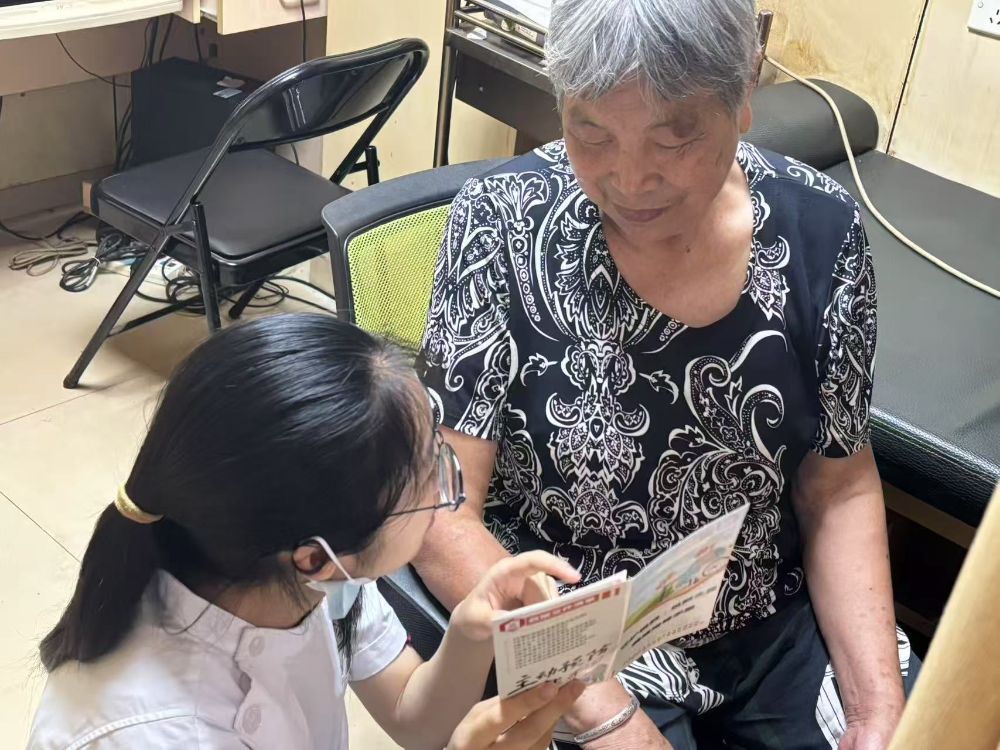 在南星街道社區衛生服務中心,負責體檢區與大廳的3名志愿者重點強化了“慢病與失能”關聯知識的講解。“張爺爺,您的高血壓控制得不錯,但別忘了每周測兩次血糖,這兩種病都可能悄悄影響行動能力呢。”志愿者一邊為老人測量血壓,一邊結合手冊上的漫畫圖解,解釋慢性病管理對失能預防的關鍵作用。不少候診老人圍攏過來,指著手冊上的“膳食寶塔”圖標咨詢日常飲食。志愿者們逐一耐心答疑,將專業知識轉化為實際應用。
