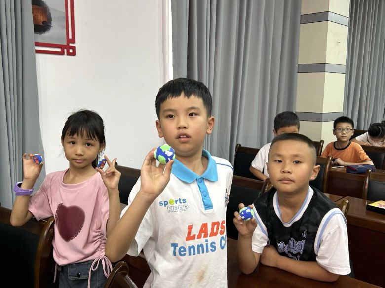 下午轉(zhuǎn)至丹陽(yáng)社區(qū),特色課程接續(xù)精彩。《走進(jìn)地理世界》課上,隊(duì)員們用地球儀演示大陸輪廓,結(jié)合剖面圖講解地殼、地幔等內(nèi)部圈層結(jié)構(gòu)。隨后分發(fā)彩泥,指導(dǎo)孩子們分層捏制地球模型,“這層紅色是地核,就像雞蛋黃!” 孩子們邊做邊念叨,在動(dòng)手實(shí)踐中深化對(duì)地理知識(shí)的理解。