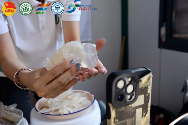 。▓D五:電商組隊(duì)員向觀眾展示海蜇)