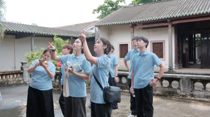 調(diào)研過(guò)程中,海德書(shū)院椰韻繪彩支教服務(wù)實(shí)踐團(tuán)成員一同沿青石板路緩步前行,循著歷史脈絡(luò)有序參觀書(shū)院建筑群。在講堂、齋舍等場(chǎng)所,大家仔細(xì)觀察飛檐翹角的雕刻紋飾,駐足品讀碑刻上的歷代題詠,深入了解書(shū)院“三進(jìn)三開(kāi)間”的規(guī)制布局及“禮樂(lè)相成”的建筑寓意。