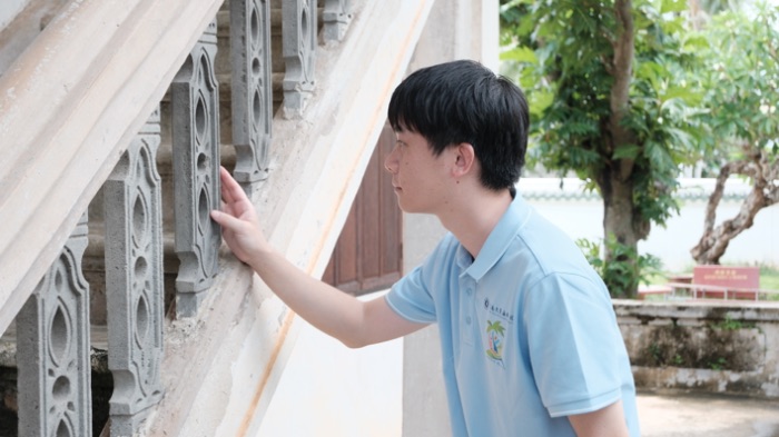 圖為海南大學(xué)海德書(shū)院椰韻繪彩支教服務(wù)實(shí)踐團(tuán)成員在溪北書(shū)院欣賞古建筑,感受百年文脈的溫度