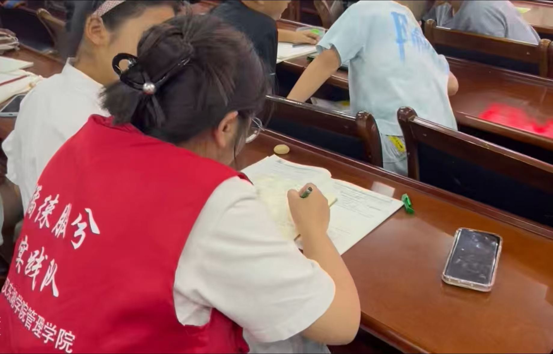 課業(yè)輔導環(huán)節(jié),隊員們延續(xù)分層指導模式:針對數(shù)學應用題難點,用 “購物清單”“分餐計劃” 等生活場景引導孩子理解題意;語文學習中設計 “句子接龍” 游戲,將生字詞融入情境表達。對基礎薄弱的學生,隊員們采用 “例題引路 + 錯題重練” 方法耐心輔導;進度較快的孩子則在引導下嘗試自主出題,教室里不時響起 “我會做了” 的欣喜之聲,學習熱情持續(xù)高漲。