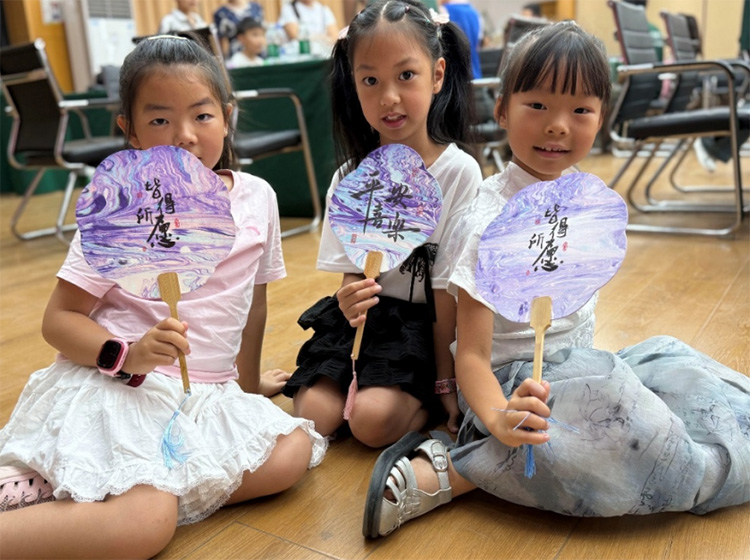 小朋友學習漆扇制作方法 祁歡天 供圖