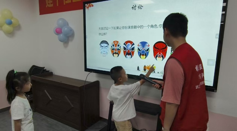 武漢東湖學院橘徠服兮實踐隊前往秭歸縣建平社區(qū),隆重舉行了“愛心托管班”開班儀式,并成功開展了“京劇非遺文化課”