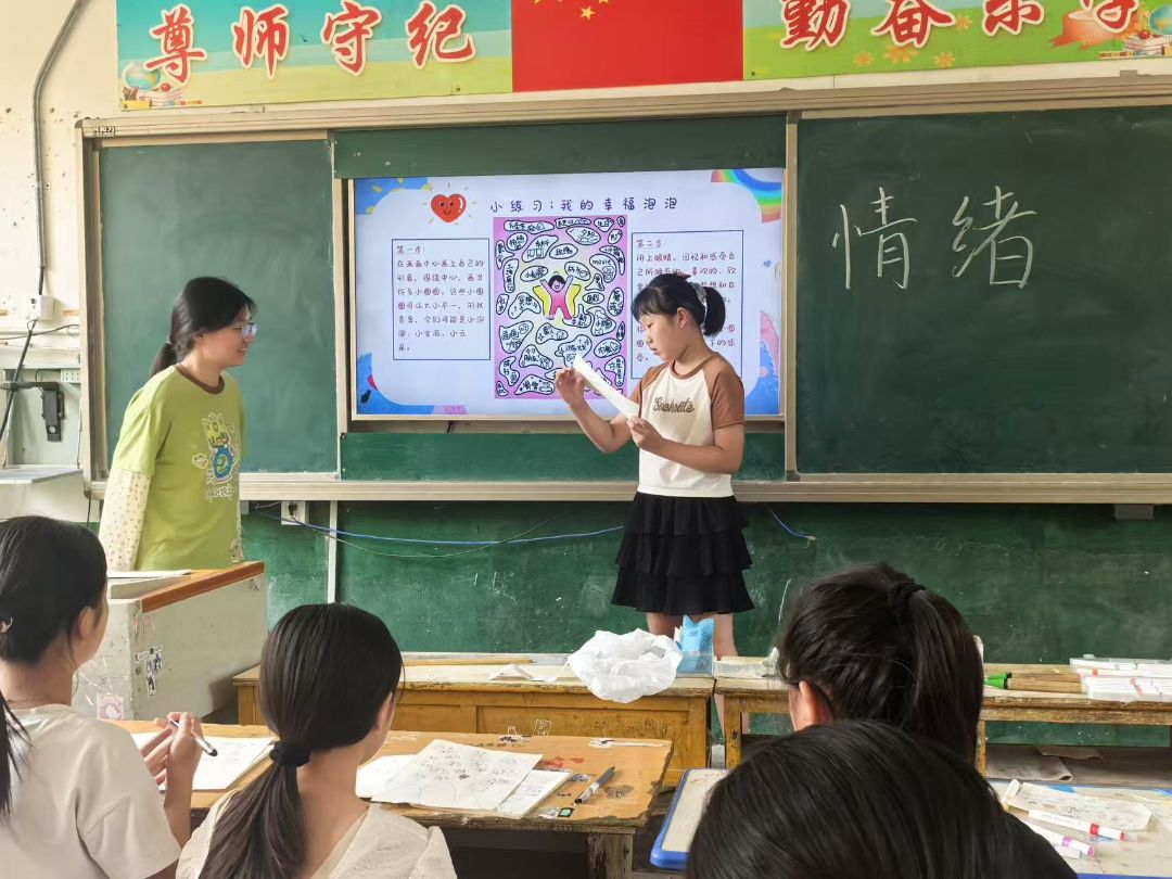 舒楠得意的展示引得全班哄笑。韓老師的"情緒小怪獸"課堂總是充滿這樣的驚喜。角落里,總是低頭的劉蕊正悄悄給她的"憂郁藍怪獸"畫上彩虹圍巾。陽光透過老舊的玻璃窗,在她微微揚起的嘴角投下細碎的金色光點。當孩子們把寫滿心事的"幸福泡泡"貼成愛心形狀時,不知道是誰輕輕哼起了剛學會的《送別》。