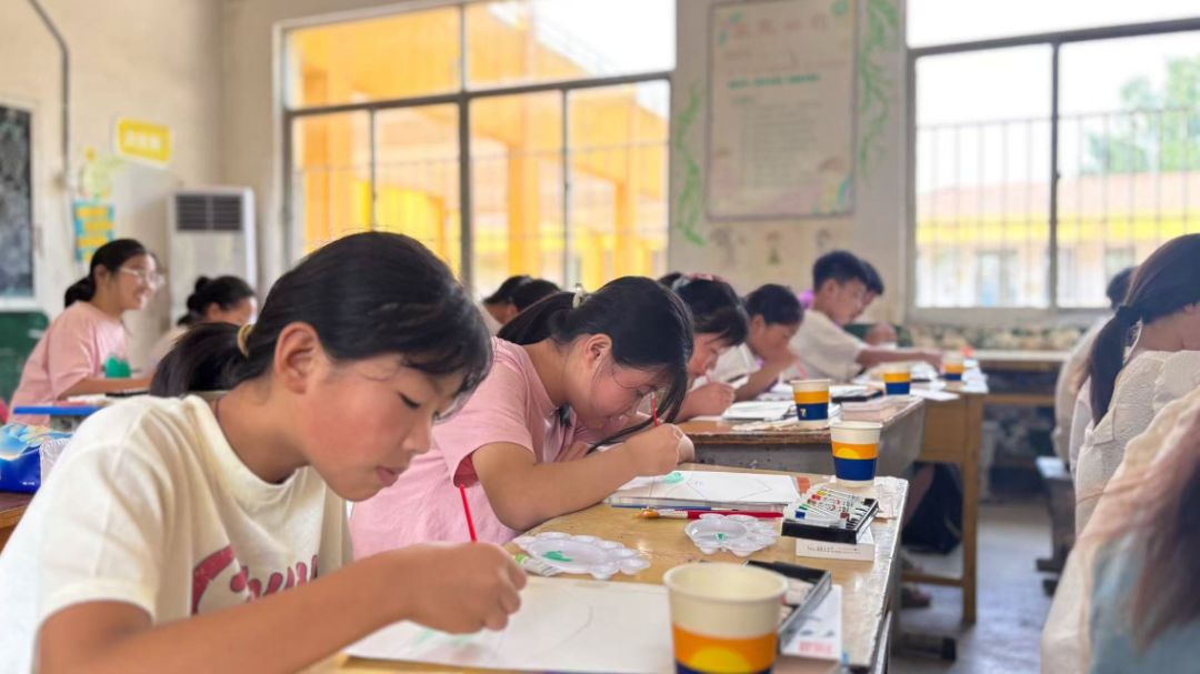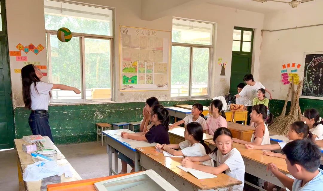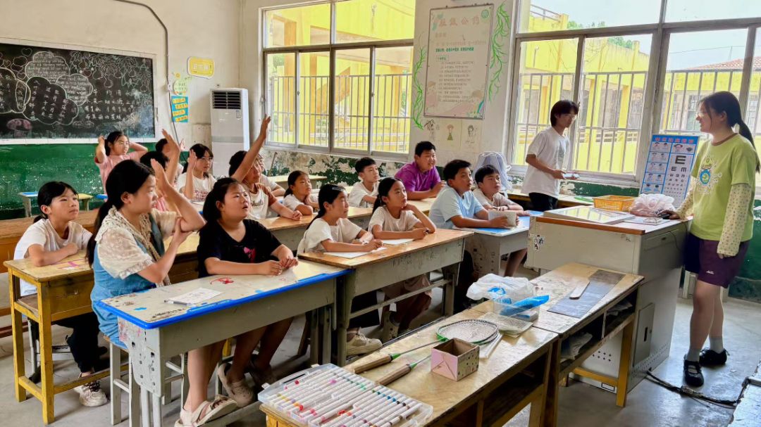 七月的蟬鳴撕扯著蘇北平原的暑氣,趙莊小學褪色的旗桿在熱浪中微微顫動。當我們推開那扇吱呀作響的藍色木門時,三十多個孩子齊刷刷仰起的臉龐,像是突然點亮了整個教室的燈盞。支教課程繼續聚焦藝術、體育等多方面知識技能,寓教于樂。在趣味十足的課堂互動、深入淺出的技能實踐中,孩子們收獲了綜合素養的提升與心靈的成長。