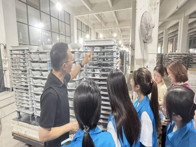 7月8日,隊伍前往第一家企業調研——廣東嘉百恩陶瓷科技有限公司。蔡董熱情接待了調研團隊,并就楓溪鎮陶瓷產業發展現狀進行了深入交流。蔡董客觀分析了當前產業面臨的人工成本上漲、年輕人才短缺等現實挑戰,同時著重分享了企業轉型升級的實踐經驗,特別強調“要在創新管理模式和營銷策略的同時,堅守傳統工藝精髓”的發展理念。這些行業洞見為團隊后續調研提供了重要參考。