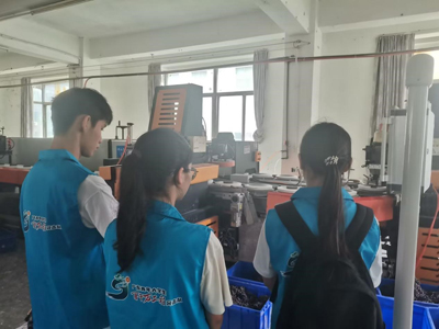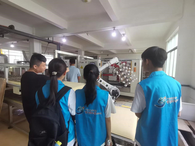 圖丨企業高管及楓溪鎮團委書記帶領團隊參觀廣東四通集團股份有限公司生產線 陳家欣通訊員拍攝
