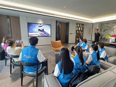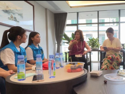 7月9日,團隊前往潮州市楓溪鎮人民政府。政府辦公大樓莊重肅穆,與周邊陶瓷企業的繁忙景象形成鮮明對比。在簡樸的會議室里,楓溪鎮團委陳書記熱情接待了團隊,并對團隊提出的問題進行詳細回答。這次訪談為后續的企業調研奠定了扎實的政策認知基礎,也讓隊員們對“政府引導、市場運作”的產業發展模式有了更深刻的理解。