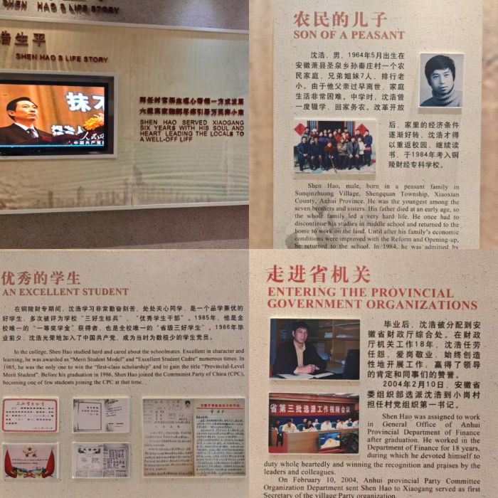 走進紀念館,在寫著沈浩同志生平事跡的一幅幅圖片前,成員跨越時空,去了解這一位無私奉獻的共產黨員。沈浩同志(1964年1月-2009年11月6日)是中國共產黨優秀黨員、模范基層干部的代表人物。他因在小崗村擔任第一書記期間的突出貢獻和無私奉獻而廣受贊譽,被譽為“人民的好村官”。