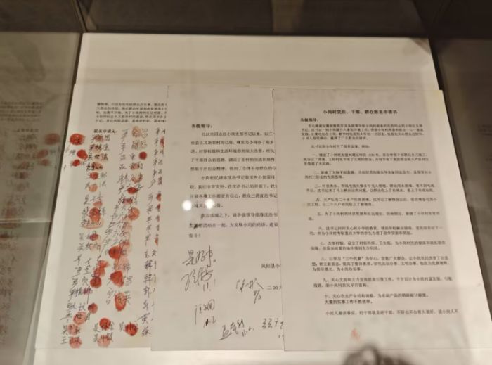 最令人動容的,是那兩份按滿鮮紅手印的“請愿書”。2006年底,沈浩同志三年任期將滿,小崗村村民強烈挽留,用按紅手印的方式,這是小崗村表達民意最莊重的方式,請求他留下。沈浩被村民的真情打動,毅然決定繼續留任。