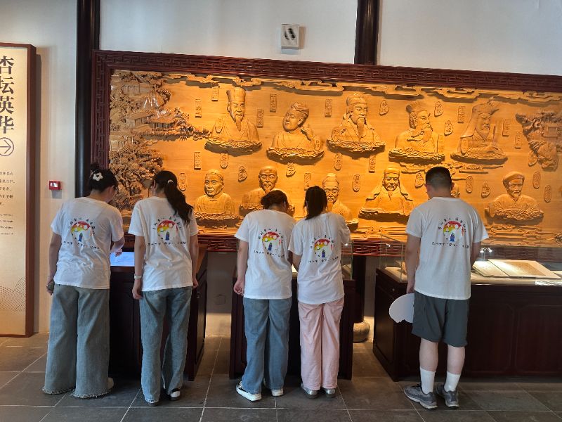 團隊隨后走訪蘇州狀元博物館。入口處,祁子涵同學為大家詳細講解狀元博物館的基本情況,吸引游客駐足傾聽。進入博物館,實踐團成員們被一幅幅狀元畫像和一件件珍貴文物所吸引。在清代狀元潘世恩的展區,他的殿試答卷字跡工整、論述精辟,展現出深厚的學識功底。
