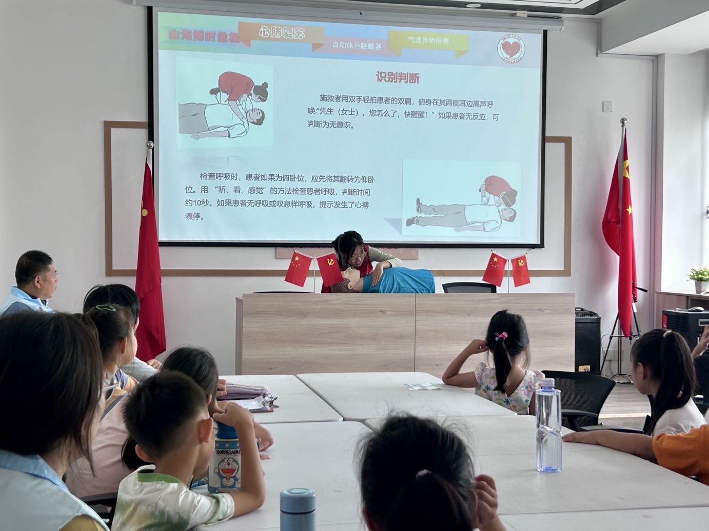 7月16日,山東大學(xué)威海校區(qū)“山海博時”急救宣傳團(tuán)走進(jìn)山東省威海市怡園街道濱州街社區(qū),以“救在身邊,安全一夏”為主題,為社區(qū)的小學(xué)生們帶來了一場生動實(shí)用的心肺復(fù)蘇急救知識宣講。這是團(tuán)隊(duì)暑期社會實(shí)踐的第一期活動,志愿者們通過專業(yè)講解、情景模擬和互動演示,讓小學(xué)生們在輕松愉快的氛圍中掌握了急救技能,為暑期安全增添了一份保障。