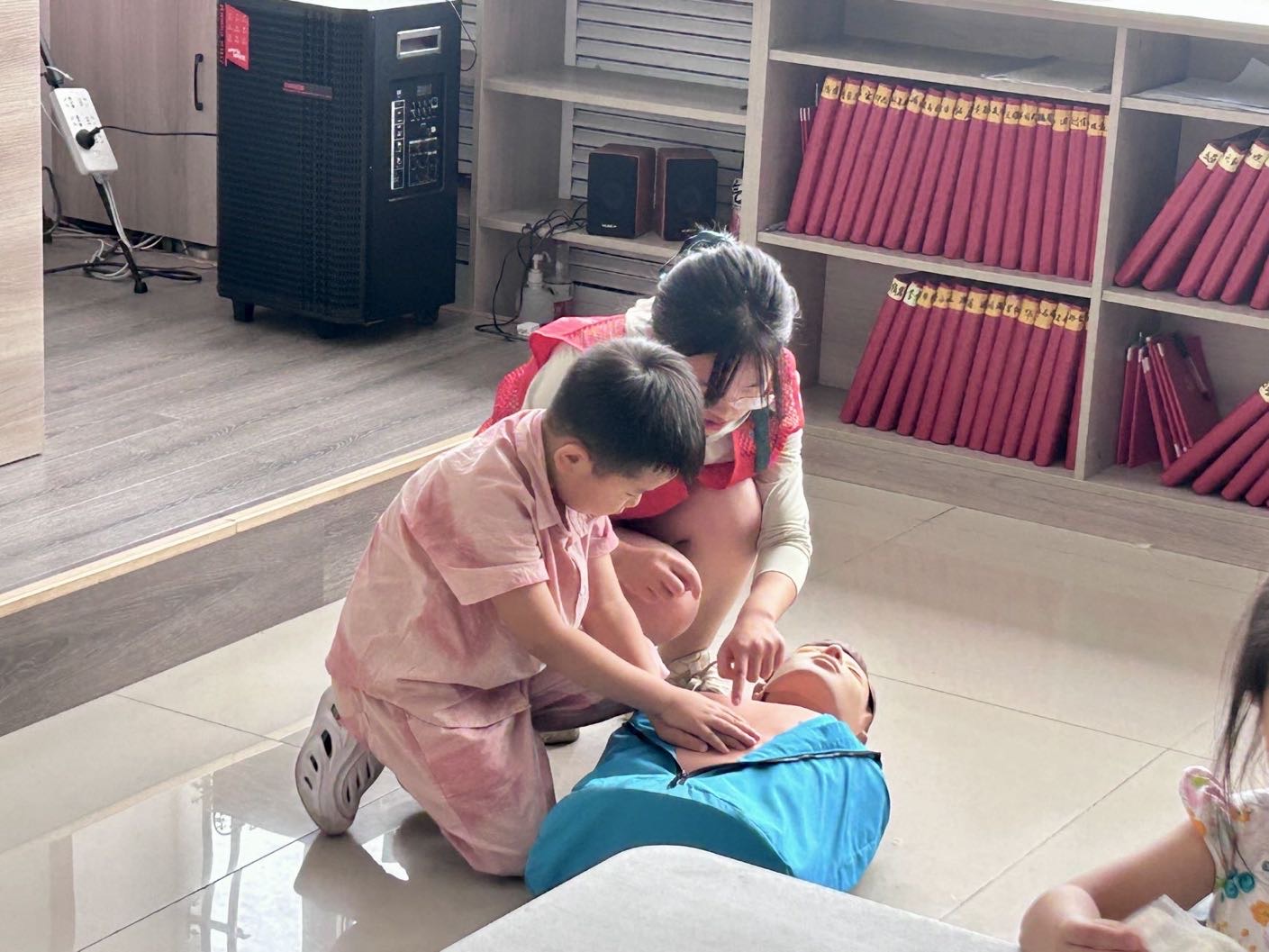 孩子們熱情高漲,紛紛踴躍舉手,許多小朋友在志愿者的幫助下完成了第一次胸外按壓,雖然動作略顯生疏,但在團(tuán)隊(duì)成員的指導(dǎo)下,變得愈發(fā)專業(yè),小朋友們的認(rèn)真態(tài)度也贏得了大家的掌聲。