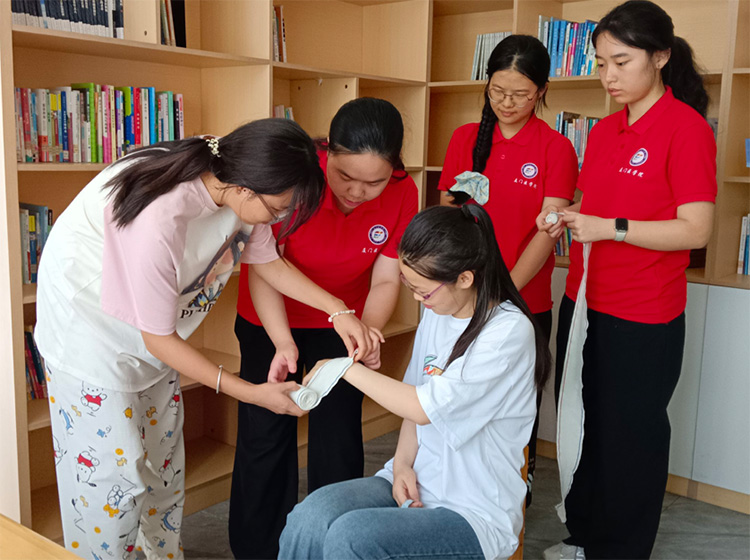 2025年7月13日,廈門醫學院“取經百強·聚力鄉興實踐行”實踐隊走進福建省南平市徐市鎮,開展健康服務與知識普及活動。在徐市鎮公益書吧門前,實踐隊隊員們為居民們測量血壓,耐心解答健康疑問;在書吧內,他們為徐市中學的學生們帶來生動的急救技能培訓,演示包扎技巧,并分享大學專業選擇、校園生活等經驗。隊員們以親切的互動拉近距離,在暢談中傳遞醫學知識,鼓勵學子們勤學奮進。這場融合健康服務與青春對話的實踐活動,既為當地注入溫暖,也展現了廈醫學子的責任與擔當。