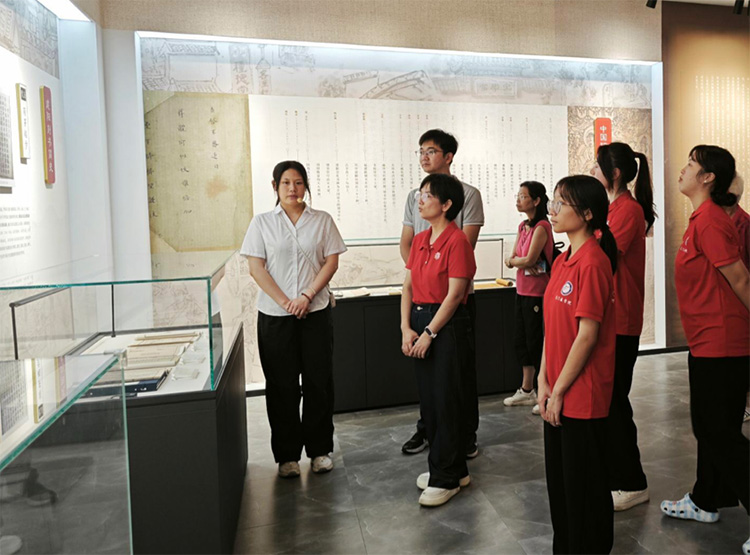 圖為建陽團區委書記陳飛與實踐隊在講解員帶領下,一同感受來自建本的獨特文化魅力(吳培雯 供圖)