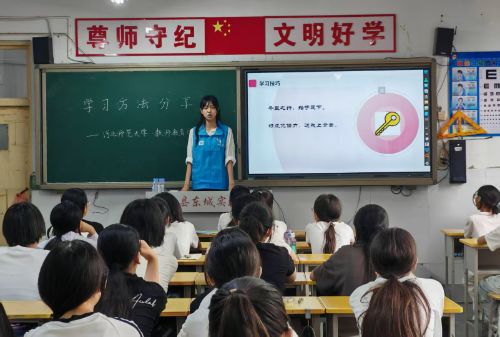 隊員們走進課堂開展問卷調查和學法指導,現場互動頻繁,笑語不斷,生動傳遞出教育交流的溫度。在與師大校友的深度交流中,前輩們結合從師大求學走向七中講臺的經歷,分享了初登講臺的忐忑、深耕教學的堅守。讓隊員們深刻感悟到:師范生的成長,既要筑牢理論根基,更要扎根基層教育實踐,在實踐中錘煉育人本領。