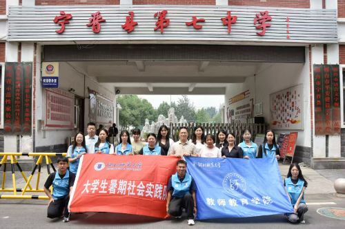 實踐隊前往寧晉縣第七中學開展交流學習活動。校長鄭志澤等校領導及河北師范大學校友代表為實踐隊舉行歡迎儀式。鄭校長介紹了學校“業精于勤,志達于正”的校訓及辦學理念,其與寧紡精神一脈相承,旨在培養勤勞肯干、品行端正的學生。