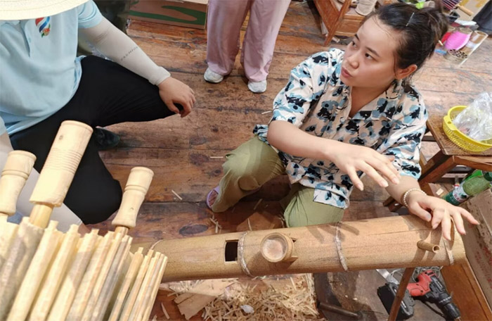 傳承人熱情接待了實踐團成員,如開啟塵封的典籍,將油紙傘源遠流長的歷史脈絡、繁復精密的制作流程以及獨具風韻的藝術特色,向成員們娓娓道來。在其彌漫著古樸馨香的工作室內,一把把精美的油紙傘宛如綻放的藝術之花。成員們近距離觀賞,瞬間被其絢麗的色彩、細膩的紋樣和精湛的工藝所震撼,仿佛步入了一個凝結著詩意與匠心的奇妙世界。