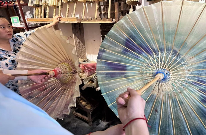 盡管油紙傘技藝曾因尼龍傘的普及而式微,但傳承人們從未停止思考與探索。他們堅守傳統工藝精髓,同時融入現代設計理念,并借助政府支持的非遺研學項目,吸引八方游客親手體驗,為油紙傘文化注入了新的生命力,推動其活態傳承之路越走越寬廣。