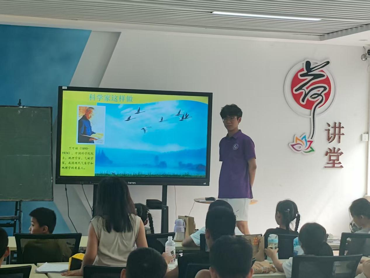 為了讓學生們更好地理解科學研究的意義,實踐團成員還講述了我國著名科學家竺可楨的故事。“竺可楨爺爺一生都在和大自然打交道,他幾十年如一日地觀察記錄天氣變化,不管是烈日炎炎還是寒風刺骨,從不間斷。他通過自己的堅持和努力,為我國氣象事業的發展做出了巨大貢獻 。”繪聲繪色地講述著竺可楨的科研歷程,孩子們聽得聚精會神,對科學家的敬佩之情油然而生,立志要像竺可楨爺爺一樣,做事有恒心、有毅力。
