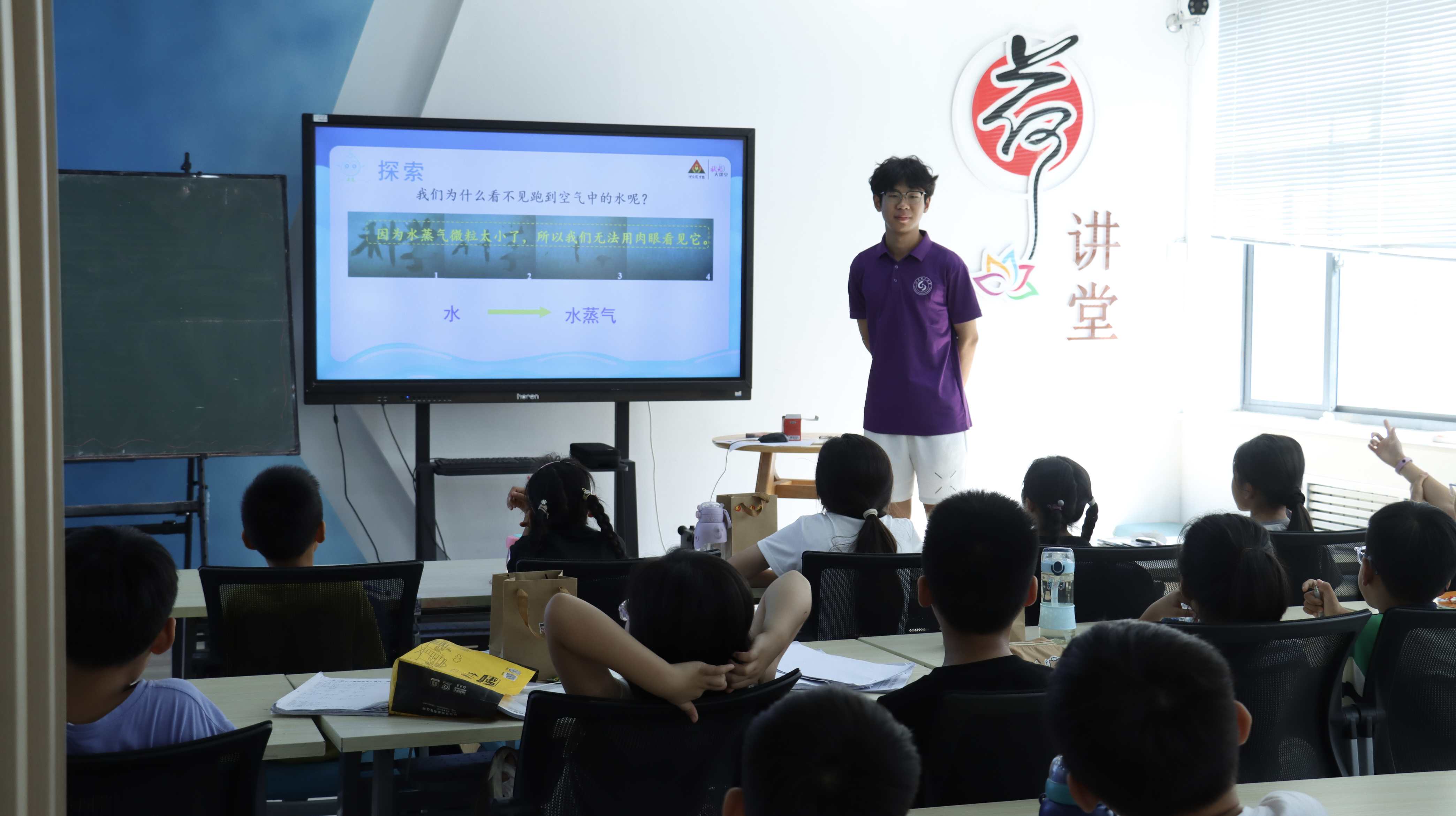 “水是怎么來的呢?”“為什么水有時候是液體,有時候又變成冰啦?”7月17日15點,山東理工大學“圓夢”社會實踐團走進荷韻小學,開展了一場別開生面的科學小課堂。課堂上不僅為學生們揭開了水的神秘面紗,還巧妙融入了科學家的勵志故事以及黨的二十大精神,為孩子們帶來了一場知識與精神的雙重盛宴 。