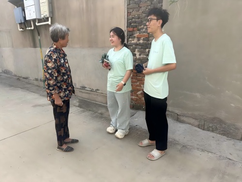 實踐團成員率先在村內開展安全排查工作,沿村落小巷前行,仔細檢查可能存在的消防隱患。排查期間,實踐團成員對相關情況進行記錄,向村民說明隱患可能導致火災蔓延迅速、難以撲救等嚴重后果,提醒村民及時清理雜物,對老化電線進行更換整改,重視消防安全。