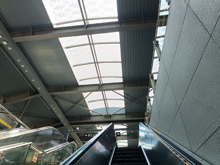 實踐團(tuán)成員發(fā)現(xiàn)趙營站采用地下到地上的路線結(jié)構(gòu),車站主體建于地面之上,站臺與軌道直接暴露于自然環(huán)境中,實踐團(tuán)成員通過影像記錄詳細(xì)調(diào)研站內(nèi)設(shè)施布局,地面站臺遮陽避雨設(shè)施是否完善,同時關(guān)注地上車站的獨特優(yōu)勢,如自然采光,通風(fēng)對節(jié)能的貢獻(xiàn),站臺視野開闊,對乘客導(dǎo)向的幫助等。