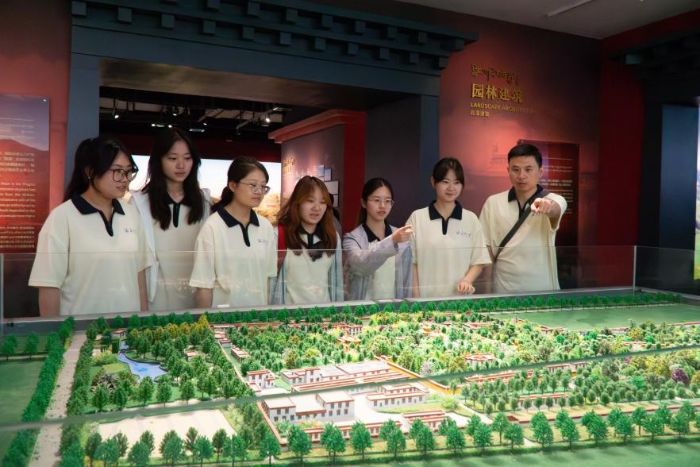 隨后,實踐隊來到藏族建筑與書法展廳,駐足觀看布達拉宮、大昭寺等建筑的沙盤模型,感受藏族建筑的智慧,對比烏金體、朱匝體等不同書體,體驗藏文書法“曲筆如流水”的審美。