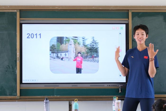 “2008年奧運會前,運動員張娜脖子受傷,被護具架著,坐在輪椅上仍堅持練習自墊球。”李雪銀繪聲繪色地講述著故事,孩子們下意識地摸了摸自己的脖子,小眉頭微微蹙起,仿佛親身體會到那份傷痛中的堅持。這份藏在故事里的堅韌,悄悄在他們心中扎下了根。