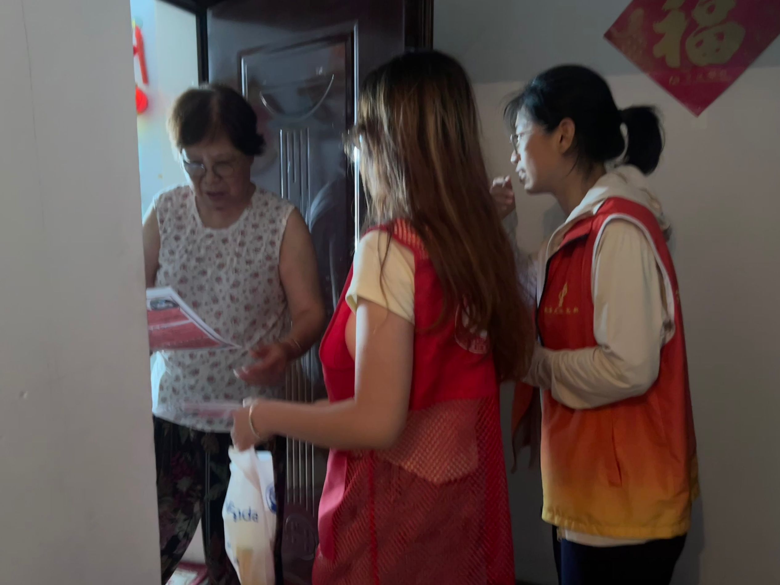 在瑪珈山社區(qū)的大力支持下,社區(qū)網(wǎng)格員帶領(lǐng)宣傳團(tuán)成員走訪居民家中。成員們發(fā)放宣傳單并向居民細(xì)致講解急救知識,大大提高了此次急救科普活動的覆蓋率與影響力。社區(qū)的支持與協(xié)助為活動的順利開展奠定了堅實基礎(chǔ)。