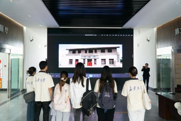 圖為實踐隊觀看將軍樓公園青藏公路紀念館宣傳片