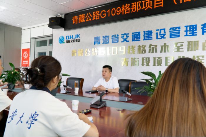 青海省交通建設管理有限公司在青海省交通建設管理有限公司,與長安大學1999級校友,省交建公司黨委委員、副總經理,G109指揮部指揮長余海龍進行交流座談。余海龍向實踐隊詳細介紹了青藏公路G109線格爾木至那曲段提質改造工程的項目概況與建設意義。“做這一行是很苦很累的,對人的生理和心理方面都是一種挑戰,但是當我們走在自己參與和主持修建的路上,那種獲得感和滿足感是別人無法比擬的”,余海龍表示,“在長安大學學習的過程中,培養了我公路人的決心和勇氣,讓我一直堅守本心、踐行使命,不忘修好每條路、服務好群眾的理念”。