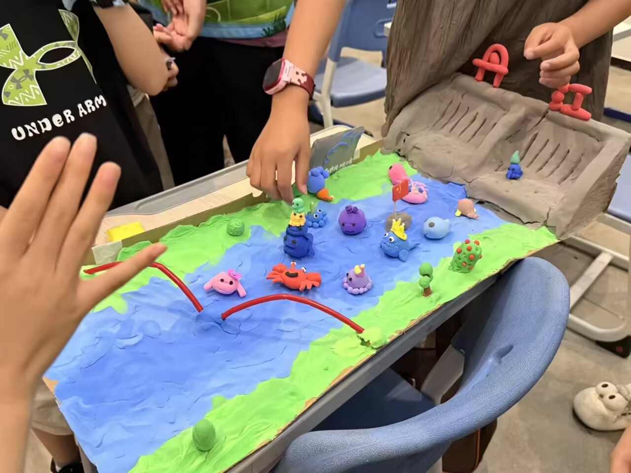 活動伊始,隊員們以一段航拍丹江口水庫的短片拉開序幕——粼粼波光中,水鳥掠過水面,岸邊草木蔥蘢,瞬間抓住了孩子們的目光。“這片‘亞洲天池’不僅滋養著千萬人,還是200多種鳥類、50多種魚類的家呢!”隊員們化身“生態講解員”,用擬人化的語言介紹著水庫里的“居民”:會“跳舞”的大鯢、披著“彩衣”的紅嘴鷗,還有能凈化水質的沉水植物。孩子們時而瞪大眼睛傾聽,時而舉手分享自己見過的動植物,現場氣氛熱烈。