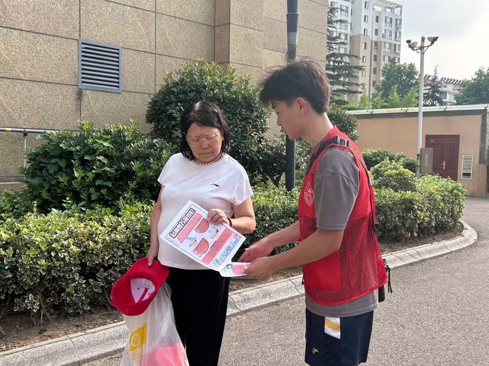 社區(qū)角落處,一位正在整理雜物的阿姨,也迎來了熱情的宣講。成員蹲下身,遞上宣傳單,結合實際場景講解:“要是身邊有人突發(fā)狀況,掌握心肺復蘇,說不定就能挽救一條命!”阿姨停下手中動作,認真聆聽,對成員豎起大拇指。