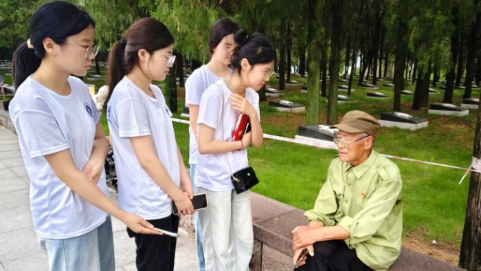 圖 2采訪參觀孟良崮紀念館的退役老兵 通訊員賈思雨攝