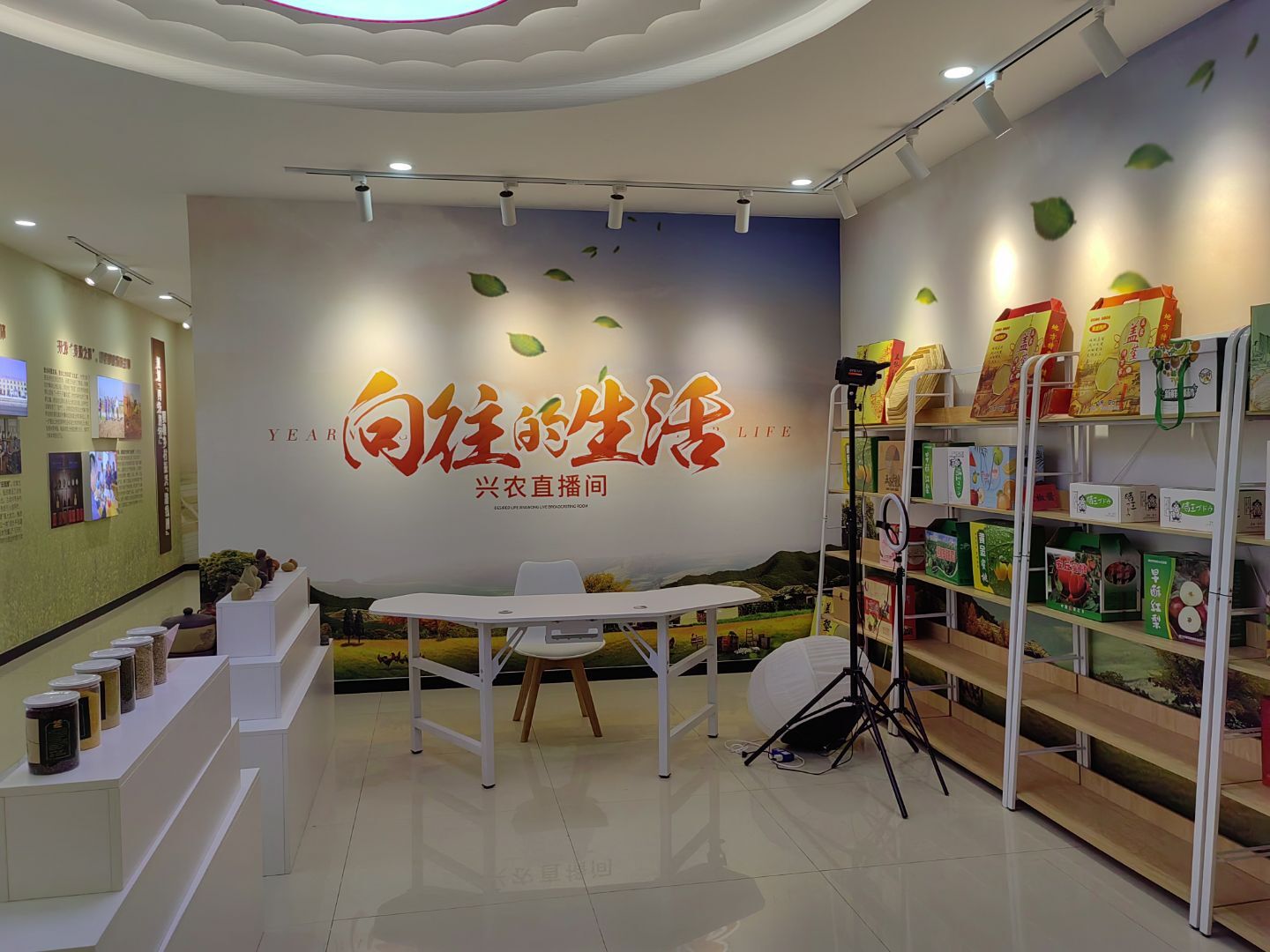 隨后,團隊參觀了社區精心打造的助農直播間。直播間內,工藝精湛的手繪陶瓷茶壺、晶瑩剔透的粉皮、醇香四溢的黑玉米茶、品類豐富的五谷雜糧與有機面粉,以及打包裝箱的蓋墊、香甜的甜瓜與蜜桃等新鮮果蔬琳瑯滿目,生動展示了電商新業態為本土優質農產品“出村進城”開辟的廣闊渠道和注入的蓬勃活力。