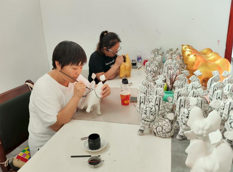 踏入泥塑村,先去參觀非遺傳承人的文創店,各種手工藝術品讓人眼前一亮,然后映入眼簾的是廣場,如同一節講述非遺文化的課堂。在這里,泥塑文化的發展用照片形象的展示出來。作為寶雞鳳翔極具標識性的文化符號,泥塑產業早已跳出單純的技藝范疇,成為鄉村經濟的有力支撐點。代代相傳的泥塑手藝,村里打造了特色文旅產業,使其真正變成村民口袋里的“真金白銀”,成為鄉村經濟發展的重要組成,更讓寶雞文化借由泥塑這一載體,走出陜西、走向全國,走向全世界講好屬于中國鄉土的文化故事。