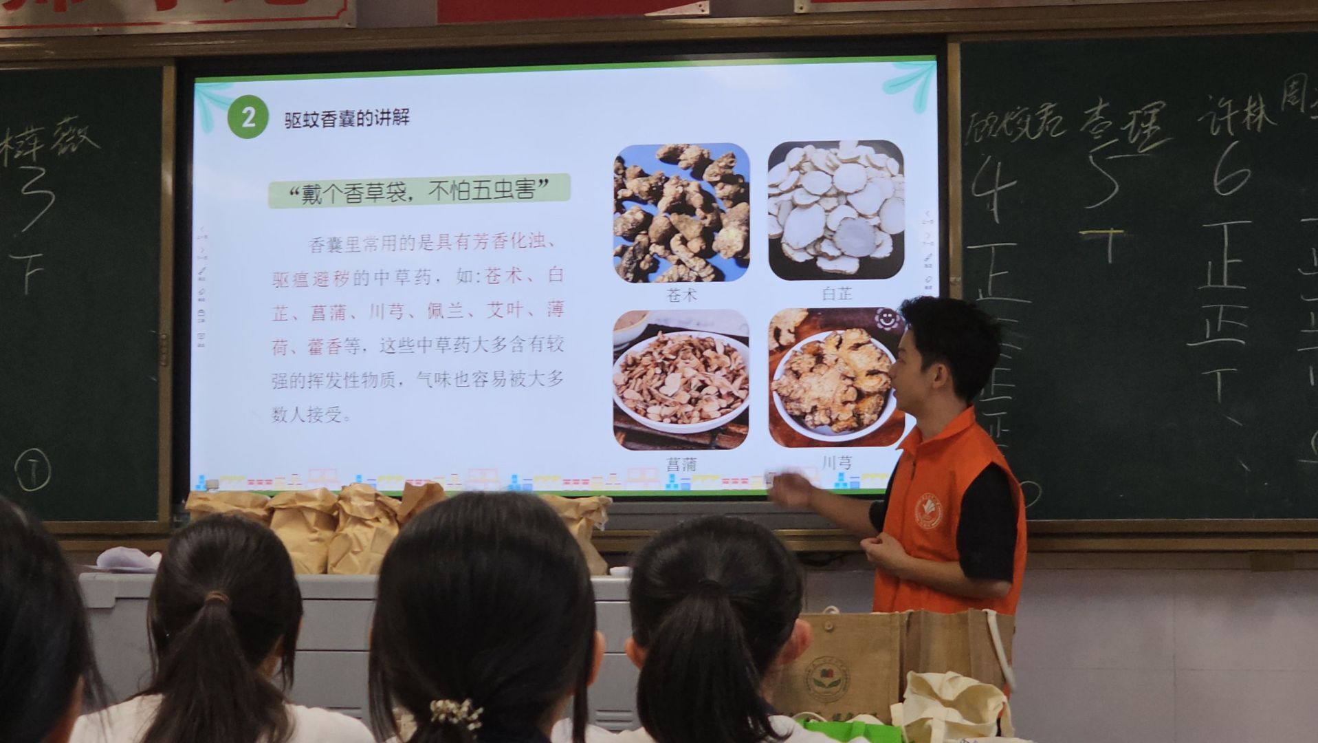 在謝易初中學及廣州社區,開設“草藥盲盒猜猜樂”互動課堂,帶領居民親手辨識魚腥草、金銀花等道地藥材,現場體驗驅蚊香囊制作,讓本草芬芳觸手可及;創新設計《家庭食藥禁忌》折疊手冊與棋盤游戲,將“頭孢配酒”等生活禁忌知識融入趣味競技,科普入腦入心。
