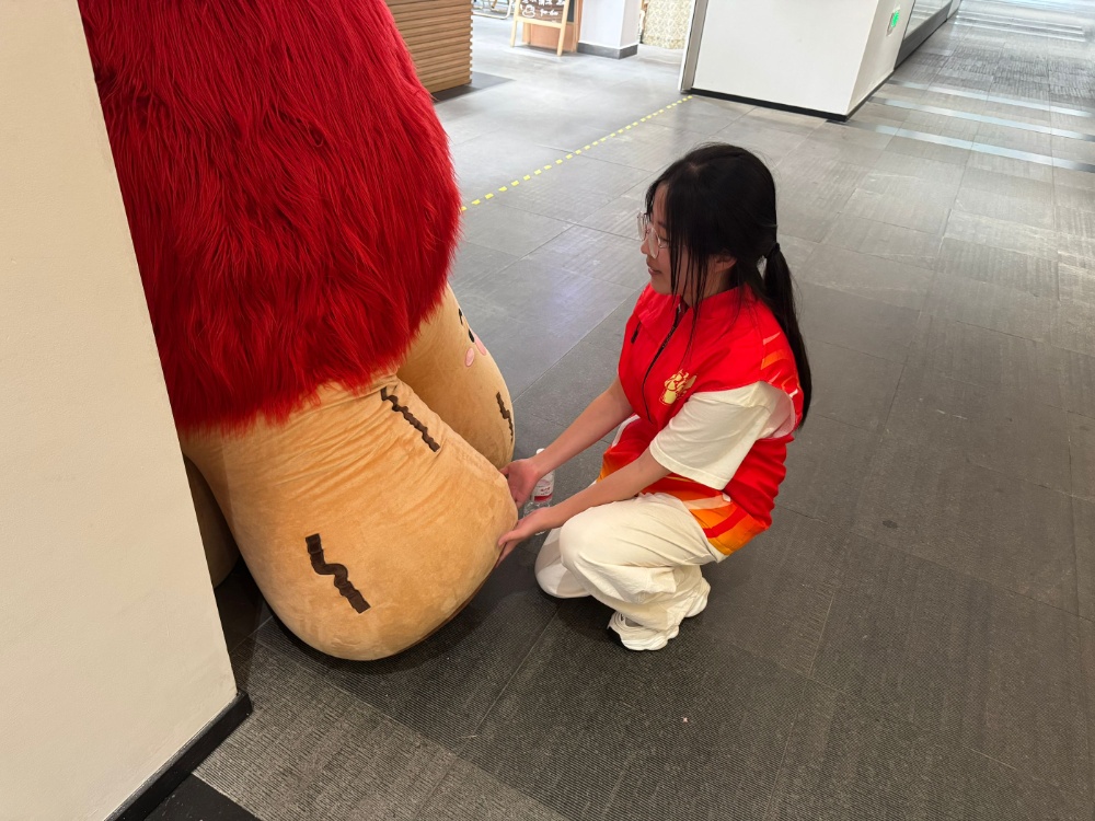 志愿者黃晶先是小心翼翼地為蘆火火玩偶擦拭,指尖帶著輕柔的力度拂過玩偶的絨毛。他們先用軟毛刷掃去浮塵,再蘸取溫熱的清水輕輕擦拭污漬,連褶皺里的細微灰粒都不放過。陽光透過窗欞落在玩偶上,原本黯淡的絨毛漸漸重現(xiàn)光澤,磨損的衣角也恢復了整潔。